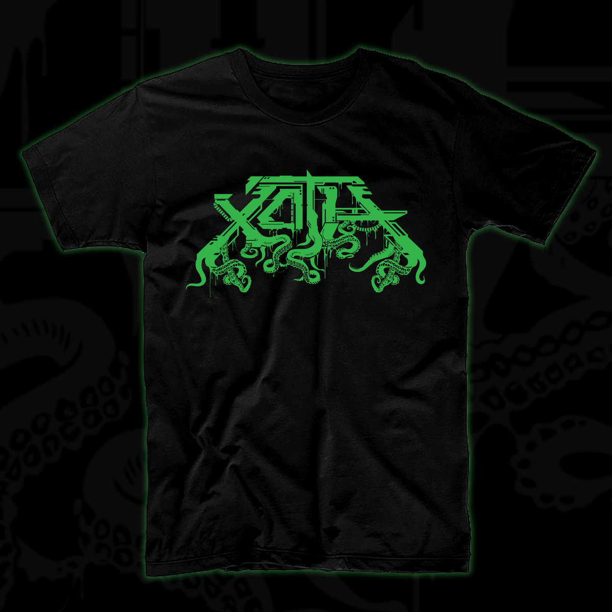 Xoth logo by Christopher Horst. Speaks for itself without any additional artwork. Nice big print in green on a soft 50/50 blend shirt.