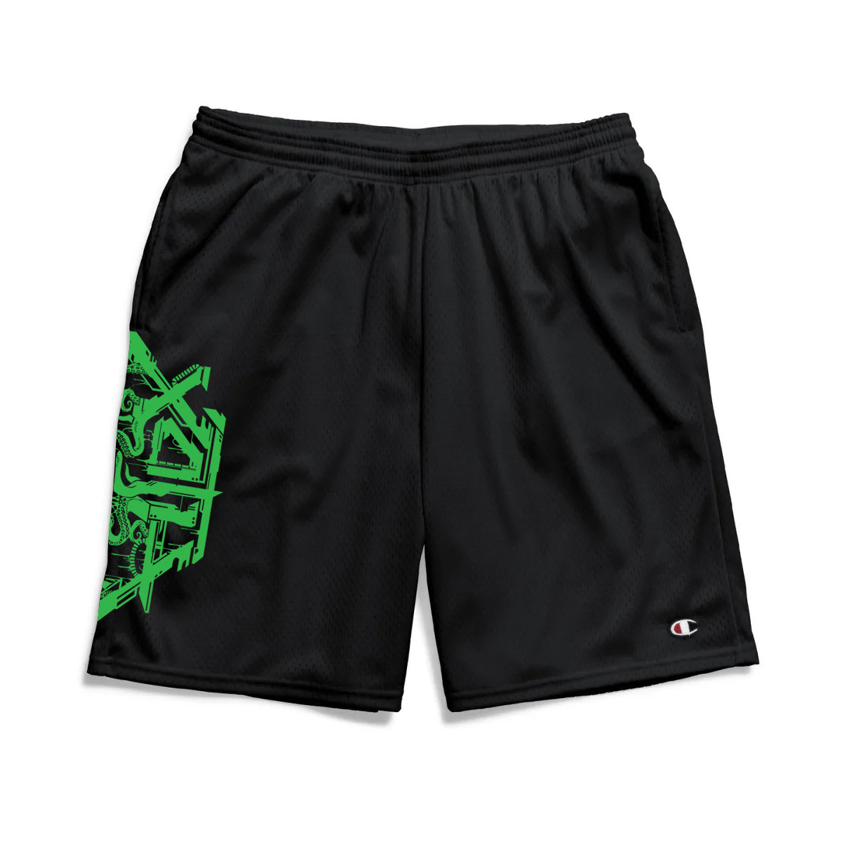 Polyester Champion shorts featuring our green logo by Christopher Horst.